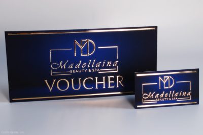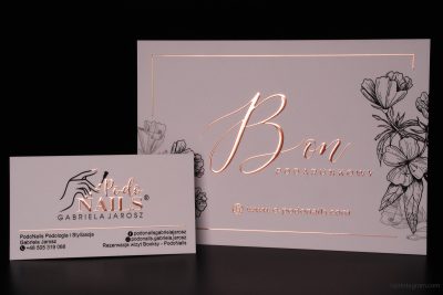 Biglietti da visita con lamina metallizzata in rilievo nei colori oro, argento, rame, oro rosa o altri colori. Possibilità di utilizzare il 3D metallico su entrambi i lati del biglietto da visita. Inoltre è possibile combinare diversi colori di lamina metallizzata e una vernice UV con punti in rilievo separatamente.