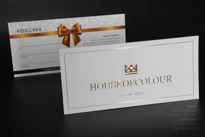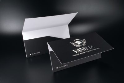 Konfiguruj samodzielnie własne etui do voucherów, biletów. Ten produkt pozwala na dostęp do następujących opcji: laminacja, folie metaliczne, lakier UV wypukły.